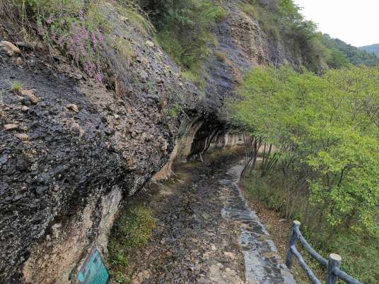 皖西大裂谷集峽谷地貌和洞穴景觀于一體,裂谷長(zhǎng)約1500米,寬數(shù)十米、高十余米,谷坡陡峭,多在80度左右,最陡處四座直立,谷深數(shù)十米、高百余米,為一陡立的“V”字形谷,大別山區(qū)所罕見(jiàn)。裂谷是由流水沿?cái)嗔褬?gòu)造長(zhǎng)期侵蝕下切所形成的,其西側(cè)洞穴也是因流水沿巖石構(gòu)造軟弱部位選擇性溶蝕所致。