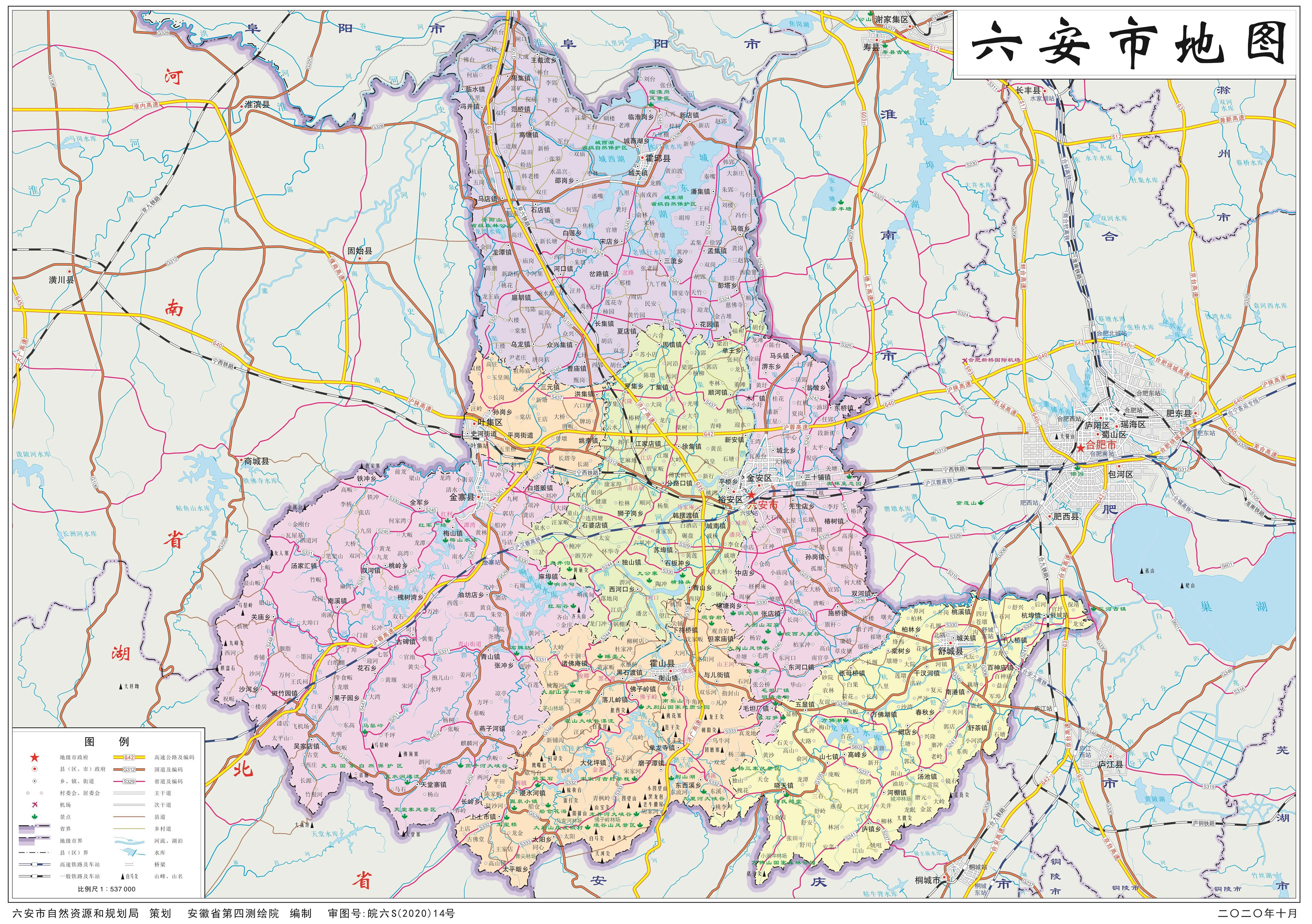2015年12月3日,國(guó)務(wù)院批復(fù)同意將六安市壽縣劃歸淮南市管轄,至此,形成今六安市行政區(qū)域。