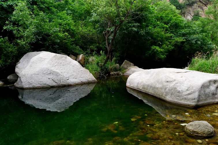 黑龍?zhí)毒皡^(qū)位于石城鎮(zhèn)鹿皮關(guān),景區(qū)是一條峽谷走廊,全長4公里,總面積9平方公里。峽谷俗稱轱轆峪,蜿蜒曲折,兩壁陡峭奇聳,峰巒疊嶂。景區(qū)共有懸潭、沉潭、落雁潭、通天瀑、平沙潭、曲潭、滴水潭、葦潭、三疊潭、龍戲潭、珍珠串、三潭疊瀑、無底潭、黑龍真潭以及龍門口、龍劈石、刺猬石等30多個景觀,如顆顆明珠鑲嵌在峽谷中。