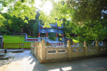 知松園位于南北主要游覽干道西側(cè),占地2公頃,是1987年新辟建的景區(qū)。景區(qū)內(nèi)一、二級古松柏100余株。在景區(qū)之東立寬1.5米,長2.5米,高5.5米巨石一塊,正面書直徑為0.8米的“知松園”三字,石背錄陳毅詩“大雪壓青松,青松挺且直,欲知松高節(jié),待到雪化時”。知松取意于《論語·子罕》“歲寒然后知松柏之后凋也”。景區(qū)內(nèi)有古松同琉璃塔形成借景,命名為“瓊松塔影”。