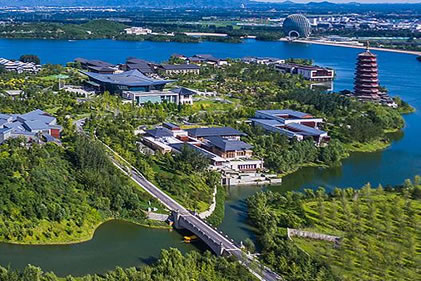 主要建筑包括雁棲湖國際會議中心,及一批供會議領(lǐng)導(dǎo)人住宿休息的別墅。