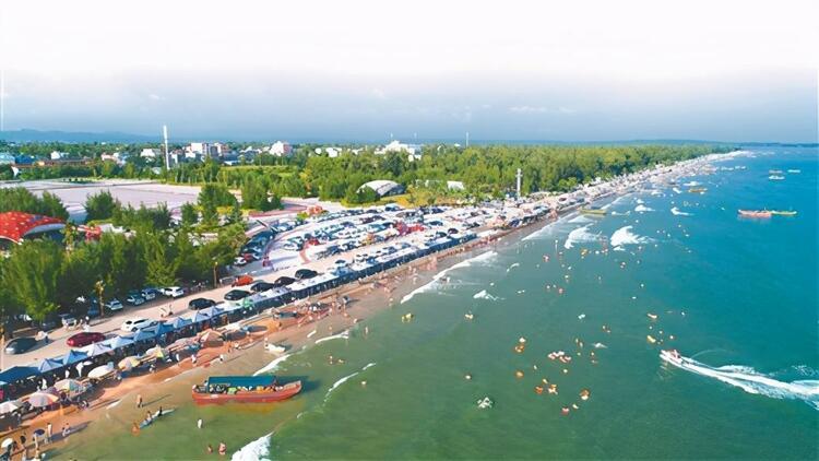 金灘,位于京族萬尾島的南邊,全長13公里,與越南的風(fēng)景名勝區(qū)萬柱島隔海相望。金灘沙細(xì)、坡緩、水清、浪平,且無海藻、無鯊魚、無污染。沙灘由海岸緩緩斜入海中,是集陽光、沙灘、海水于一身的天然“三·S”海濱浴場。岸上有20多公里長的椰樹、木麻黃觀光林帶。金灘空氣氧離子含量是內(nèi)陸城市的500~1000倍,最高氣溫33℃、最低氣溫6℃,年平均氣溫在20℃~23℃之間。