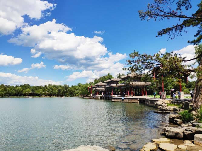 苑景區(qū)又分湖泊區(qū)、平原區(qū)和山巒區(qū)。宮殿區(qū)以北為湖泊區(qū)。