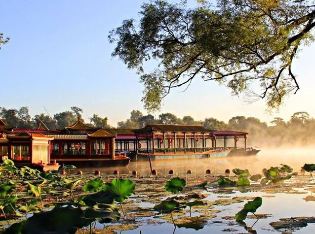 清康熙二十年(1681年),清政府為加強(qiáng)對(duì)蒙古地方的管理,鞏固北部邊防,在距北京350多公里的蒙古草原建立了木蘭圍場(chǎng)。每年秋季,皇帝帶領(lǐng)王公大臣、八旗軍隊(duì)、乃至后宮妃嬪、皇族子孫等數(shù)萬(wàn)人前往木蘭圍場(chǎng)行圍狩獵,以達(dá)到訓(xùn)練軍隊(duì)、固邊守防之目的。為了解決皇帝沿途的吃、住,在北京至木蘭圍場(chǎng)之間,相繼修建21座行宮,熱河行宮——避暑山莊就是其中之一。避暑山莊及周圍寺廟自康熙四十二年(1703年)動(dòng)工興建,至乾隆五十七年(公元1792年)最后一項(xiàng)工程竣工,經(jīng)歷了康熙、雍正、乾隆三代帝王,歷時(shí)89年。在英法聯(lián)軍攻打北京時(shí),咸豐皇帝就帶著一批大臣逃到了這里。