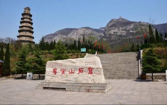 響堂山石窟,又稱響堂寺石窟,位于河北省邯鄲市峰峰礦區(qū)。最初開鑿于北齊時(shí)代(公元550—577年)。以后,隋、唐、宋、元、明各代均有增鑿。尚有石窟16座,4000多尊雕像,石窟均營鑿在山清水秀、環(huán)境優(yōu)美的鼓山最優(yōu)質(zhì)的石巖中。石窟幽深,人們?cè)谏蕉蠢飺粽扑π,都能發(fā)出洪亮的回聲,故名“響堂”。