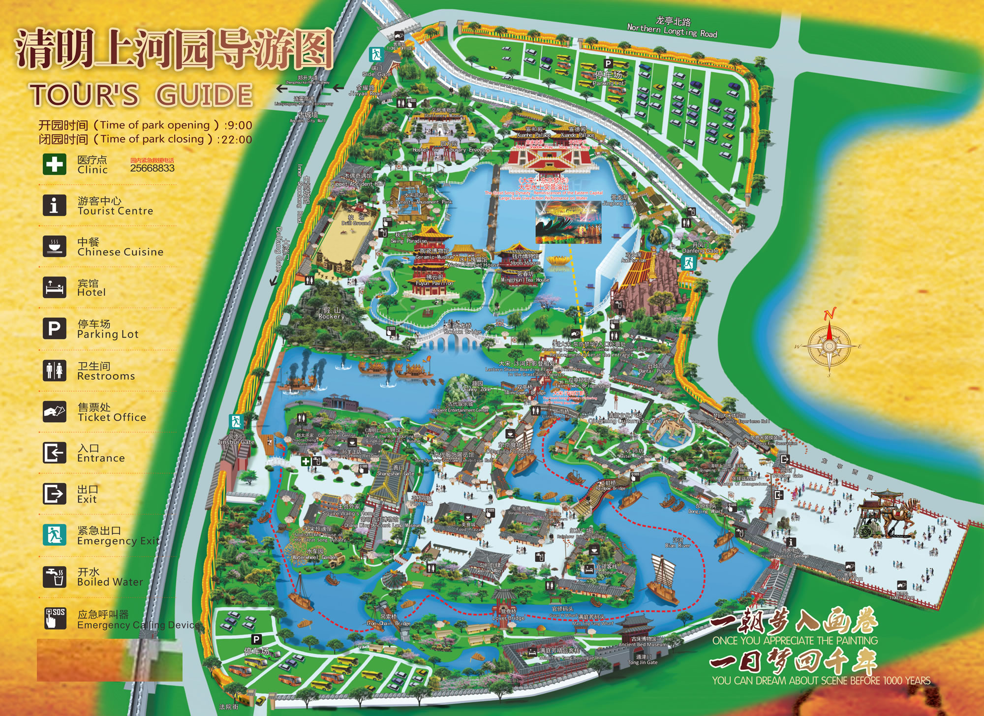 連霍高速、大廣高速、日南高速、鄭民高速均可到達(dá)清明上河園,導(dǎo)航清明上河園端門(mén),進(jìn)入北側(cè)1號(hào)停車(chē)場(chǎng)。