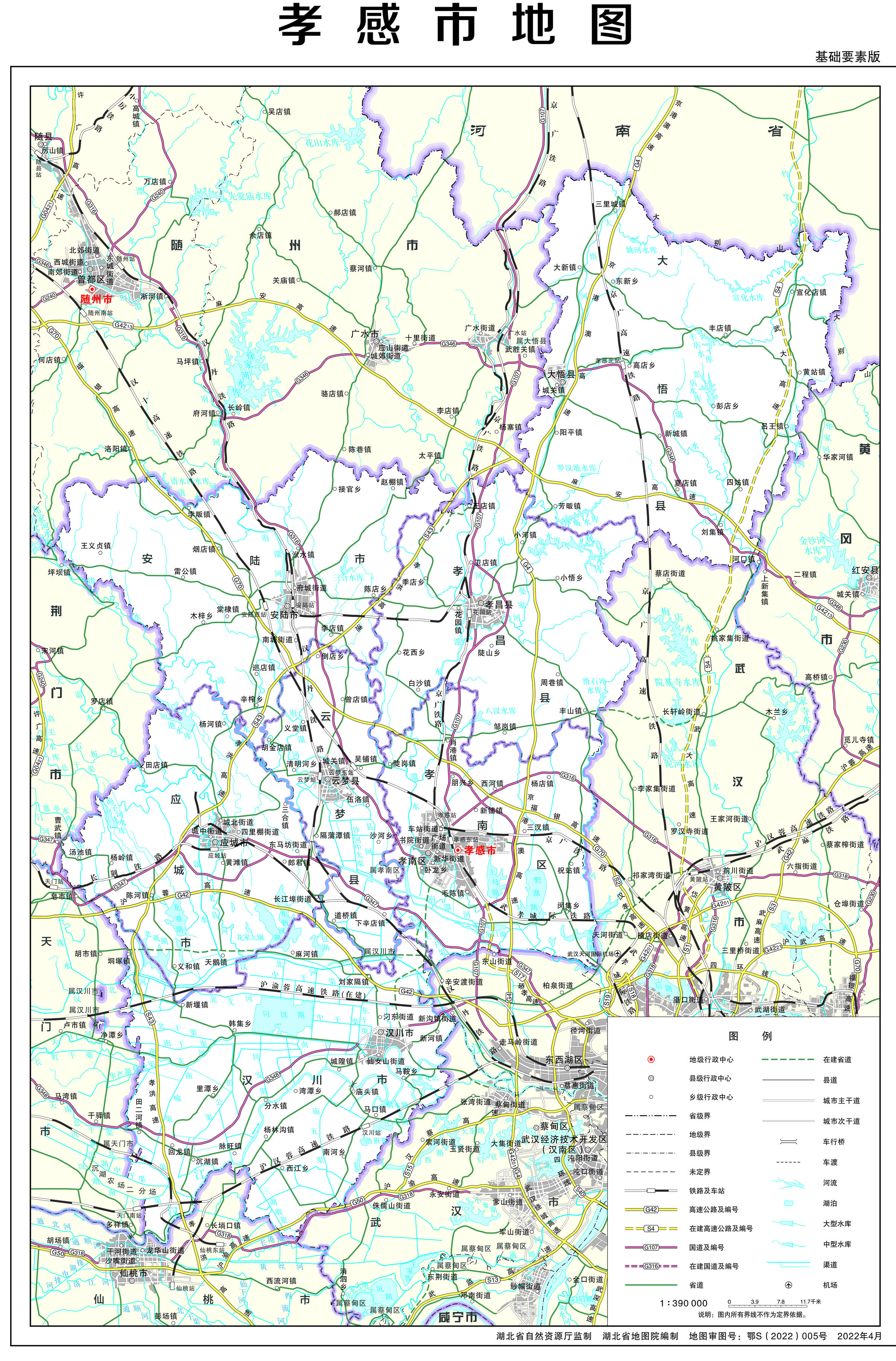 孝感市轄1個(gè)市轄區(qū)、3個(gè)縣、代管3個(gè)縣級(jí)市: