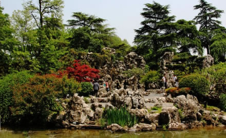 假山瀑布位于環(huán)洲南端。1992年列為南京市文物保護(hù)單位。眾多的太湖假山石堆砌成了形態(tài)各異的園林佳作,它們或似蒼鷹展翅,或似猿猴嘯天,或似禽棲獸踞。綠化層次感和色彩感非常美麗和諧。