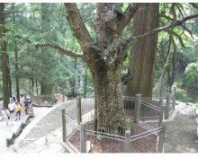 由黃龍?zhí)堆亓珠g石階上行約300米即到三寶樹。三寶樹海拔1027米,三棵參天古樹凌空聳立,二棵是柳杉,樹齡600余年,一棵為銀杏,樹齡1600年,主干數(shù)人合抱不攏,形同寶塔。三寶樹相傳為千年古可柯,樹下石碑上鐫有“晉僧曇詵手記”6字,寶樹已被重點保護(hù)。