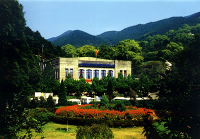 廬山會議舊址位于牯嶺東谷擲筆峰麓。原是蔣介石在廬山創(chuàng)辦軍官訓(xùn)練團(tuán)的三大建筑之一,于1937年落成,名廬山大禮堂。解放后改名“人民劇院”。1959年中國共產(chǎn)黨八屆八中全會,1961年中央工作會議和1970年九屆二中全會均在此召開。毛澤東同志主持了這三次重要會議,F(xiàn)在,這里已辟為廬山會議紀(jì)念館。里面保存著當(dāng)年許多珍貴的實物、照片、材料和根據(jù)紀(jì)錄片制作的錄相片,供游人觀看。 右側(cè)不遠(yuǎn)處的“廬山大廈”為外觀4層、內(nèi)有6層的鋼筋水泥建筑,原為國民黨軍官訓(xùn)練團(tuán)的中下級軍官住所,正面額上原有蔣介石題寫的“廬山傳習(xí)學(xué)舍”四個大字。位于會址和大廈中間的一座宮殿式建筑即為1935年落成的廬山圖書館。