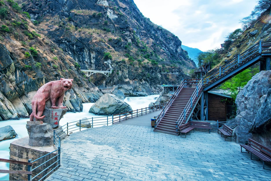 - 游覽上虎跳,欣賞金沙江壯麗景色,參觀虎跳石和老虎雕塑,拍照留念。