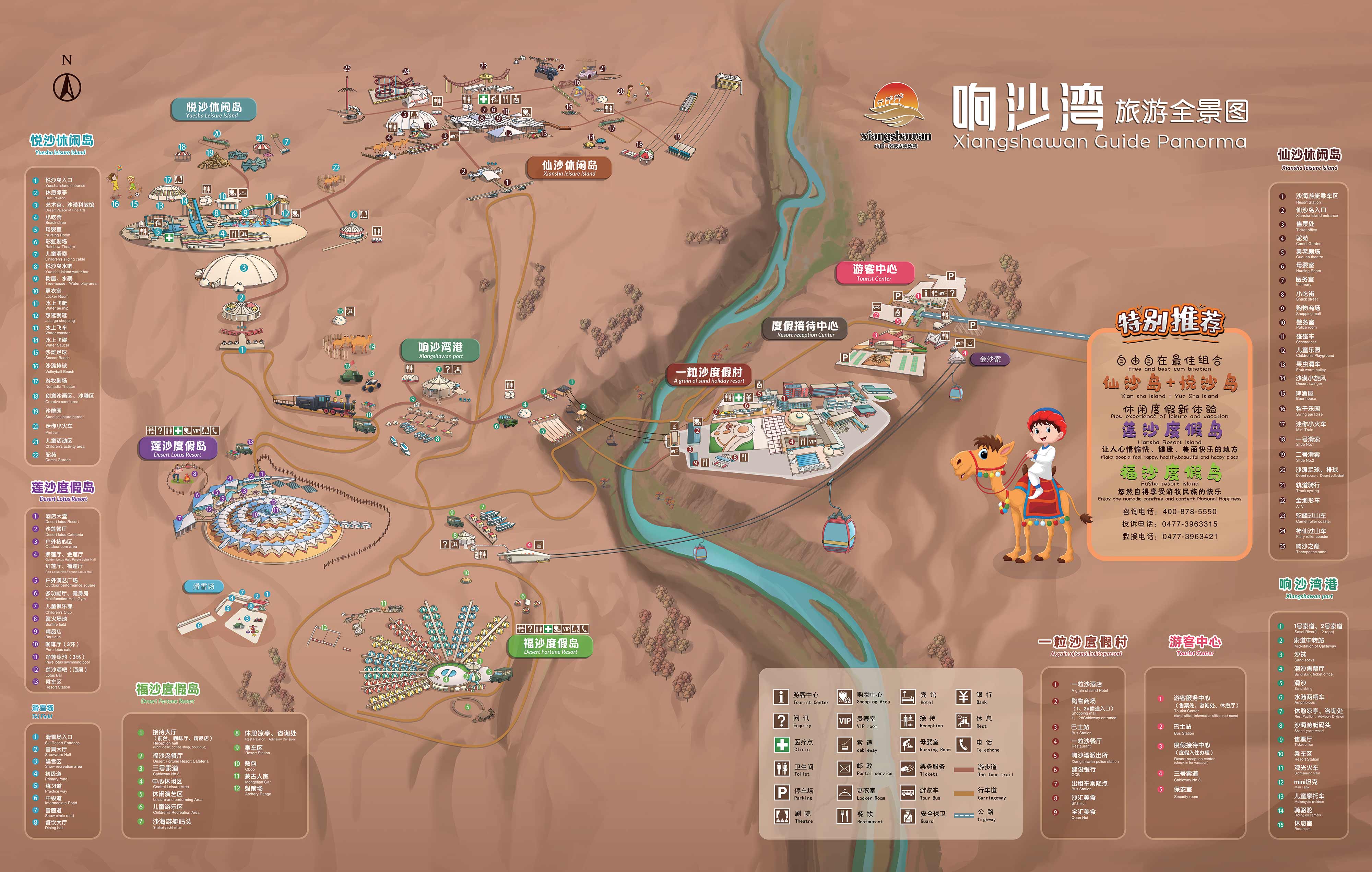 基于獨特的地形地貌及地理位置,響沙灣發(fā)展為集觀光與休閑度假為一體的特大綜合型沙漠休閑度假景區(qū),包含蓮沙度假島、福沙度假島、一粒沙度假村、悅沙休閑島、仙沙休閑島五個區(qū)域。