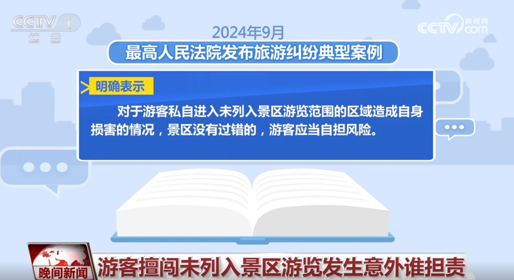 今年9月,最高人民法院發(fā)布旅游糾紛典型案例,明確表示:對(duì)于游客私自進(jìn)入未列入景區(qū)游覽范圍的區(qū)域造成自身?yè)p害的情況,景區(qū)沒(méi)有過(guò)錯(cuò)的,游客應(yīng)當(dāng)自擔(dān)風(fēng)險(xiǎn)。