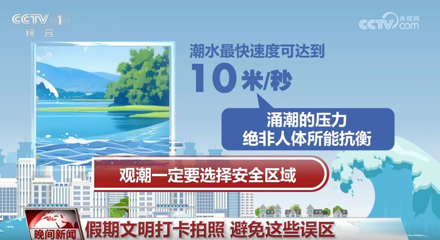 誤區(qū)一:觀潮離近點(diǎn)拍照沒(méi)事,潮水到來(lái)前跑回大堤就行。實(shí)際上,潮水最快速度可達(dá)到10米/秒,涌潮的壓力也絕非人體所能抗衡,因此觀潮一定要選擇安全區(qū)域。