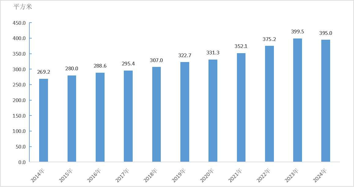 圖3:2014-2024年全國平均每萬人群眾文化設(shè)施建筑面積