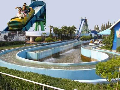 “峽谷漂流”項目是錦江樂園超大型的水上游樂項目。坐進漂流筏,順流而下,宛如行進在湘西侗家的青山流水中。水流緩急有序,峽谷飛瀑流瀉,“石門迎客”、“峽谷墜石”、“一線洞天”、“峽谷猿啼”、“淺灘濤樂”,佳境不勝美舉。峽谷山水美景,高低落差達 6 米,置身其中,可真正感受激流的刺激與樂趣。 |