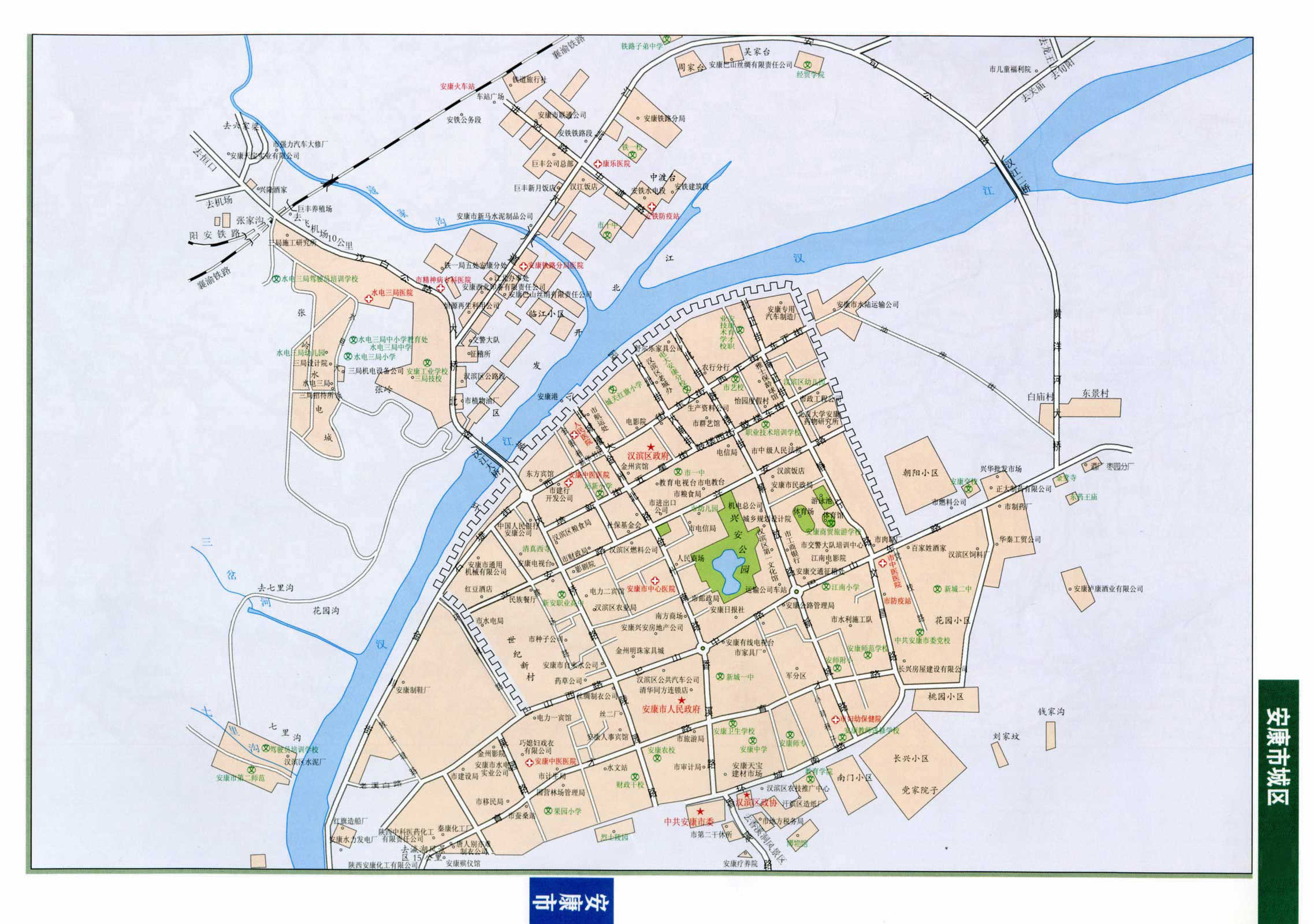 漢濱區(qū)有西康高速公路(包茂高速西安到安康段),十(堰)天(水)高速公路,境內相繼有七條高速即將建成。漢白公路(316國道)及恒(口)葉(坪)、安(康)嵐(皋)、恒紫(陽)、安旬(陽)等支線公路。水運在本區(qū)也有一定地位。陽安、襄渝、西康三條鐵路在漢濱區(qū)相交,安(康)常(州)鐵路在規(guī)劃中。是溝通我國西北、西南、中南的重要交通樞紐。此外,還開辟有通往西安、武漢的民用航空,安康新機場(富強機場)即將開工。