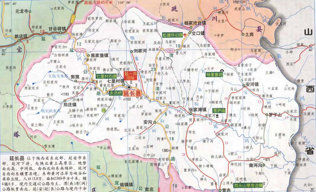 延長縣轄6個(gè)鎮(zhèn)、6個(gè)鄉(xiāng):