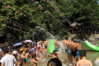 位于百匯溪上游,長約1000米。兩岸山勢(shì)陡峭、巖壁聳立,溪流潺潺,青山、綠水、寧靜、自然的峽谷風(fēng)光令人陶醉,是消夏避暑游泳戲水的理想之地。佛爺洞經(jīng)典節(jié)慶活動(dòng)之一“戲水狂歡節(jié)”在此舉行。