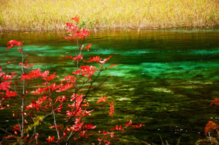 浪漫的秋風(fēng)也吹來了九寨溝最為燦爛的時節(jié)。山林暈染成色,除了綠色以外,還呈現(xiàn)出金黃、火紅等色彩,五彩繽紛,倒映在明麗的湖水中,湖山同色,湖水也斑斕似錦了,一時間竟然不能分清哪里是山哪里是水,十分迷人。