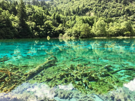 鏡海海拔2367米,長1155米、寬241米、深31米,是九寨溝第三大湖泊,因水面平靜如鏡而得名。