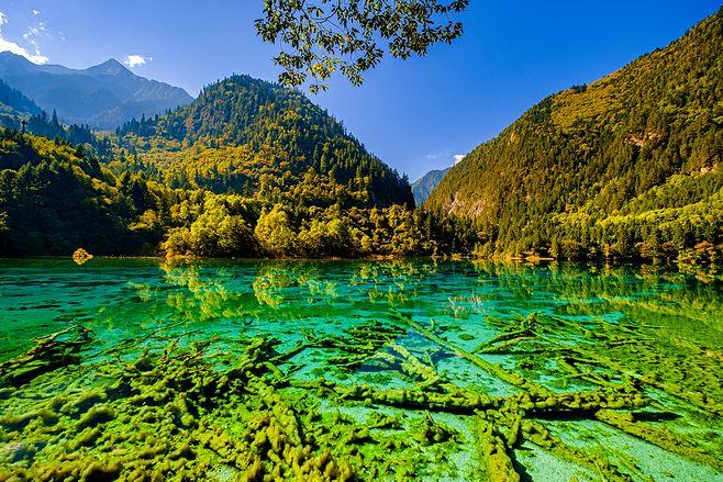 炎炎夏日,似火驕陽與粘濕汗水籠罩了整個大地,而此時的九寨溝卻截然不同。她掩映在整片整片蒼翠欲滴的濃陰之中,茂盛的林木守衛(wèi)著海子,歡快的流水梳理著樹枝與水草,一切都透著清爽。