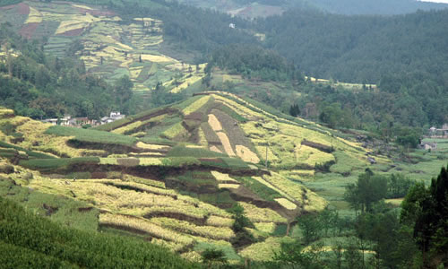 含增鎮(zhèn)屬丘陵、高山相間地形; 盤江(通口河)東岸的吳家后山、乾元山為大山地帶,東南麓為丘陵。最高海拔為2106米,最低海拔540米,地型起伏變化大,地貌大多為喀什特,基巖溶洞陡坎多,巖石裸露地面多, 地質(zhì)多為石灰石風(fēng)化層,境內(nèi)年降雨量700--1200毫米左右,氣溫較低,年平均氣溫15℃,平均日照900時(shí)左右,林木生長(zhǎng)茂密,屬國家天然林天保護(hù)區(qū)。2000年底,該鎮(zhèn)有耕地面積6214.8畝, 其中田1791畝,地4423.8畝,天然林保護(hù)面積73130畝,森林覆蓋率55%,糧食作物主要以玉米、水稻、小麥為主, 油料作物以油菜、花生為主,經(jīng)濟(jì)作物主要有生姜、大蒜、海椒、薇菜等。養(yǎng)殖業(yè)以養(yǎng)豬、羊、牛為主,小家禽有雞、鴨、鵝、兔等。