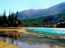 喀納斯風(fēng)景區(qū),位于新疆阿爾泰山中段,地處中國與哈薩克斯坦、俄羅斯、蒙古國接壤地帶,景區(qū)面積10030平方公里?{斯國家級風(fēng)景區(qū)的核心精華系冰川強烈刨蝕,冰石表物陰塞山谷,形成終表壟而成湖泊。湖面海拔1375米。湖形如彎月,長24.5公里,平均寬1.9公里,平均水深90米,最大深188.4米,面積6.9萬畝,蓄水量40億立方米,為中國深水湖之一。