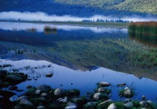 越桔島在喀納斯湖湖心島旁,有一個伸入湖中的半島,島上的林下苔蘚層長滿了獨特的越桔灌叢,人們稱其為越桔島。
