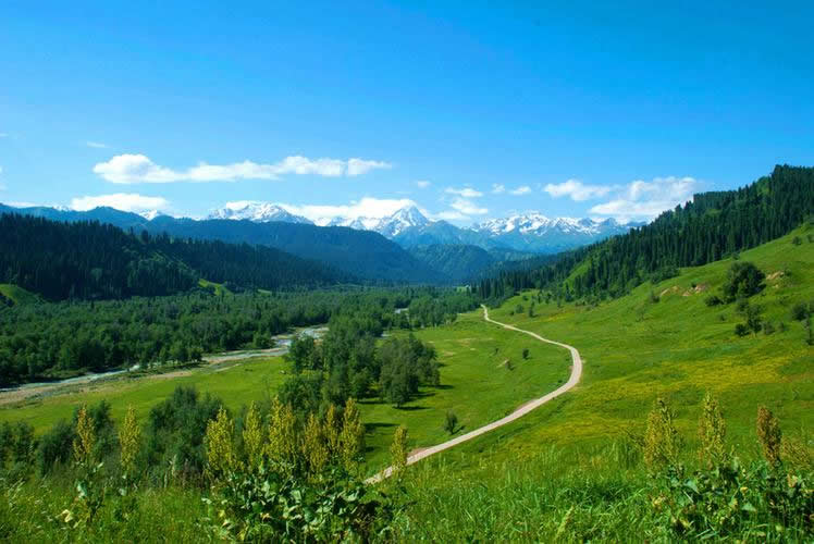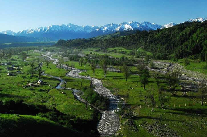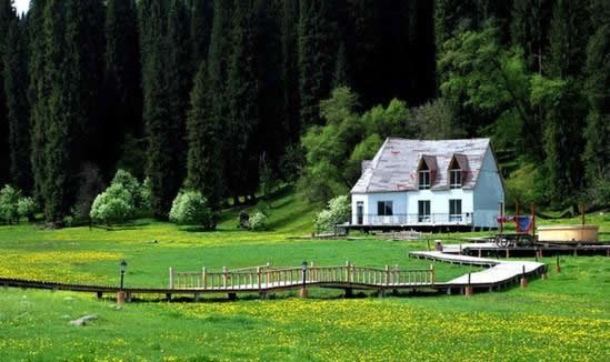 伊犁的草原風(fēng)景區(qū)都是處在東西走向的河谷地帶,唯獨(dú)伊犁鞏留縣東部山區(qū)的庫爾德寧是在一條南北走向的山間闊谷,長約14公里,最寬處約1公里,谷底平均海拔1500米,庫爾德寧便是哈薩克語“橫溝”的意思。特殊的南北走向,使得庫爾德寧冬暖夏涼,四季氣候宜人,所以庫爾德寧既是伊犁著名的風(fēng)景區(qū),又是旅游避暑的勝地,兼具江南山鄉(xiāng)的嫵媚清秀和草原景色的博大粗獷,吸引著越來越多的國內(nèi)外游客。她的絕色天姿和超凡脫俗的自然景觀令人嘆為觀止,使人無限向往。