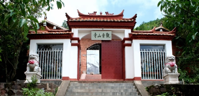 觀音山位于縣城東北約6公里處,古時這里曾建有三層殿堂,供奉觀音菩薩、如來佛像,是時游人如云,香火旺盛。惜殿堂在“文革”期間毀于一旦,1987年4月,成立修復普洱觀音勝景理事會,在大殿原址重建廟宇。寺院內鳥語花香,寺外松林茂盛,殿后有山泉流水,半山坡松濤陣陣,環(huán)境異常清幽優(yōu)雅。吃一頓寺院素齋,健康自然,是難得的享受。